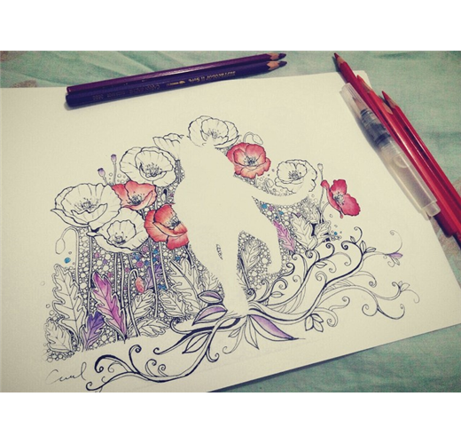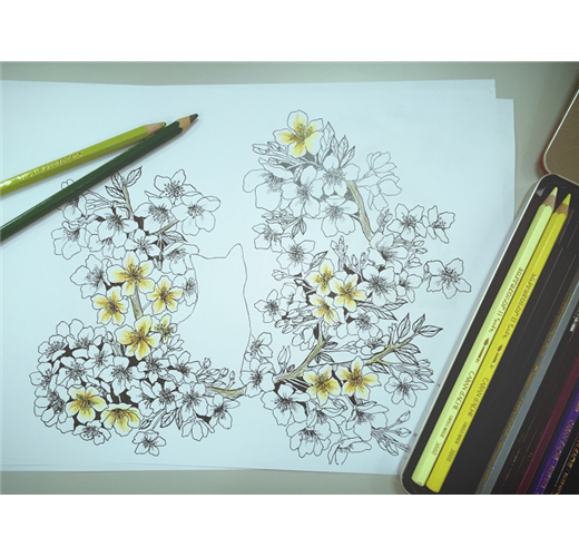 一開始,也沒有特別想畫著色畫,只是很單純喜歡貓咪的優雅姿態,貓咪本身就是很療癒的生物,什麼事都不用做,只要靜靜地望著他們,很神奇的就會讓心靈獲得平靜。所以希望我的著色書,即使不上色,也是一幅很漂亮的圖,畫中間空白的貓咪位置,就讓大家自由發揮,因為每隻貓都是獨一無二的個體,我們可以填上心中喜歡的顏色、可以直接留白、也可以單一上色,要是功力了得,更可以為牠加上五官,沒有一定的規則,只要畫得開心。