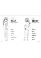 每套造型旁邊貼心標記各種服飾和飾品的材質及使用到的顏色,做為著色時的小提醒。每個主題都提供範例線稿,可照描,也可直接練習著色,完美打造專屬於自己的時尚經典。