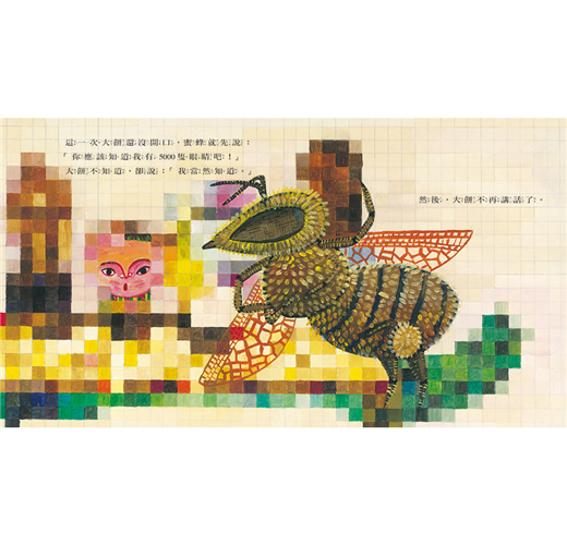 原來,每一種動物的眼睛構造都不同,所以看出去的世界並不一樣。作者用多種色彩和迥異的畫風,將不同構造的眼睛看到的世界呈現出來。讓小讀者認識不同動物的視覺特色,學習生物多樣性的概念,也了解到原來同樣的事物,大家的觀點不一定都相同。