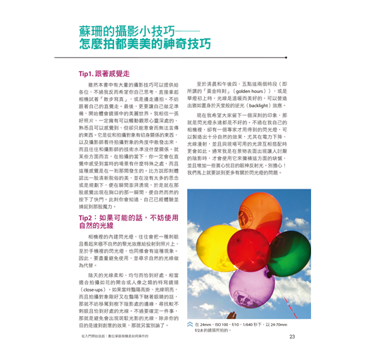 並公開照片拍攝設定值,讓讀者能夠從理解進而模仿,創造出屬於自己的美好畫面。