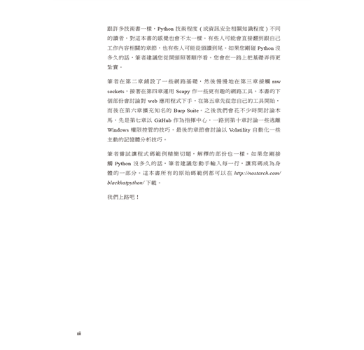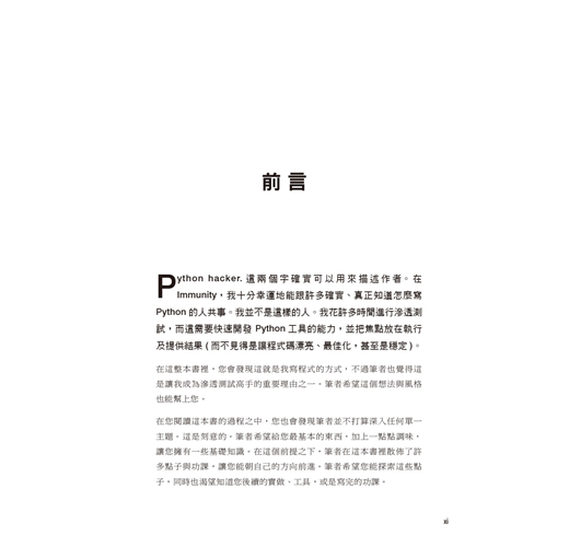 在安全領域需要主動出擊的時候,能夠即時製作威力強大的工具,是不可或缺的能力。《黑帽 Python》即將教您這些能力。