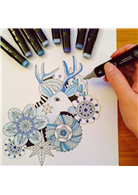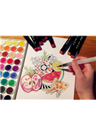 包括色鉛筆、彩色筆、蠟筆、水彩等,使用任何媒材皆可上色,請盡情發揮想像力,悠遊在色彩中吧!