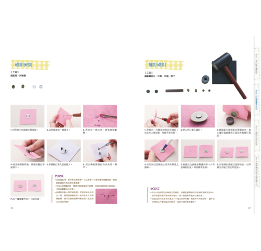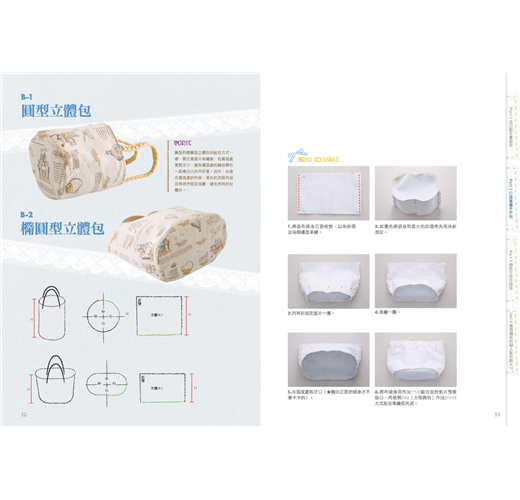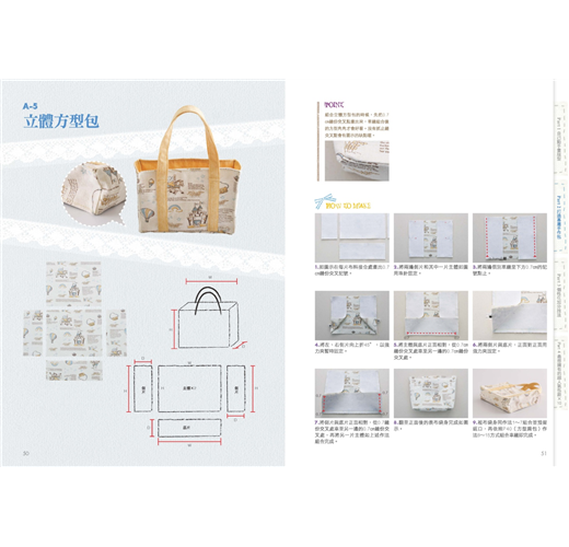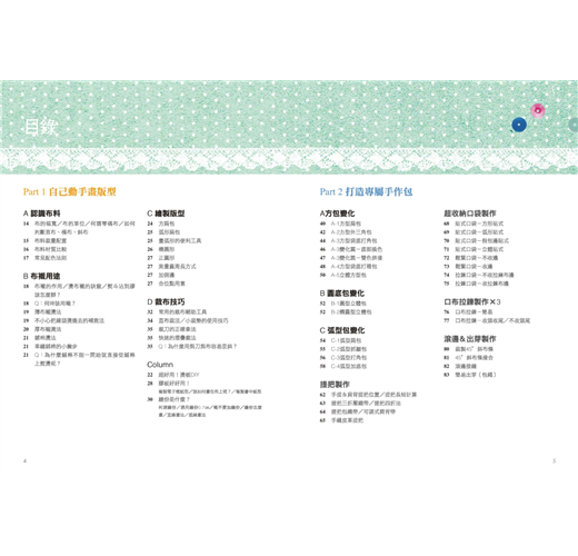 本書以布包教學順序開始,一步步詳細地從頭傳授作者多年累積的手作技巧: