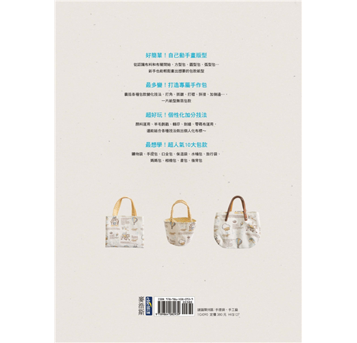 黃思靜老師在本書中,大方分享多年來的布包製作訣竅,更破天荒的傳授製作版型方法&變化技法,讓你從今以後不用依賴市售版型,自己就能打造專屬包款囉!