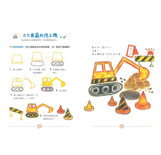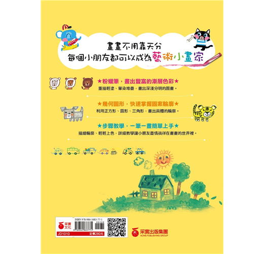 15種可愛動物+15種大自然景象+15種交通工具,Step by step,一筆一畫跟著步驟畫,輕鬆就能畫出可愛圖案,每個小朋友都可以是藝術小畫家。