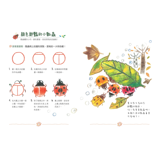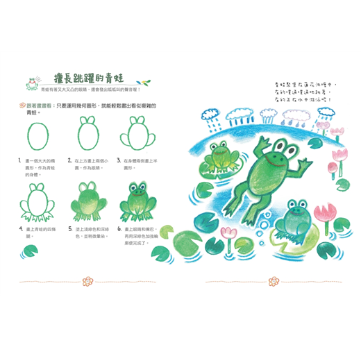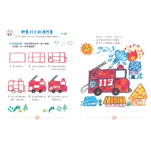 從輪廓的描繪,到上色的方式,一筆一畫的清楚教學,讓每個小朋友都能盡情徜徉在畫畫的世界裡。