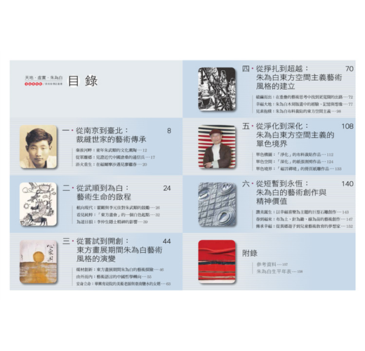 二 從武順到為白: 24 藝術生命的啟程 航向現代:霍剛與李元佳對朱武順的鼓勵 26 看見純粹:「東方畫會」的一個白色起點 32 為道日損:李仲生隱士精神的影響 39