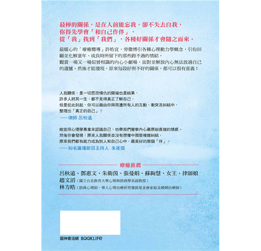 如果,你的人生路上,你和你的「關係」,時常讓你感受到失衡,也讓你感到不安及失落,鄭重推薦許皓宜博士的這本著作,相信能為你找回在關係中的安心感,好好的在關係中自在。