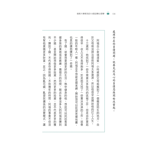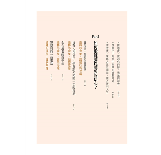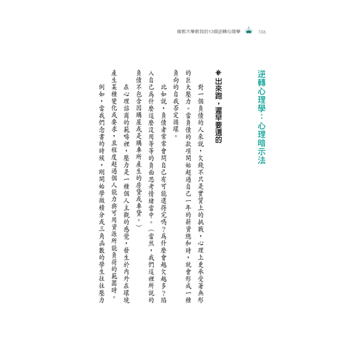 不只如此,在我的課堂上,有許許多多的人也因為開始懂得運用這些奇妙的心理效應,成功地突破了人生的許多困難與瓶頸,逆轉成勝。在書裡面,我也盡量忠於原味地寫了一些下來,希望能夠對你也有所助益。