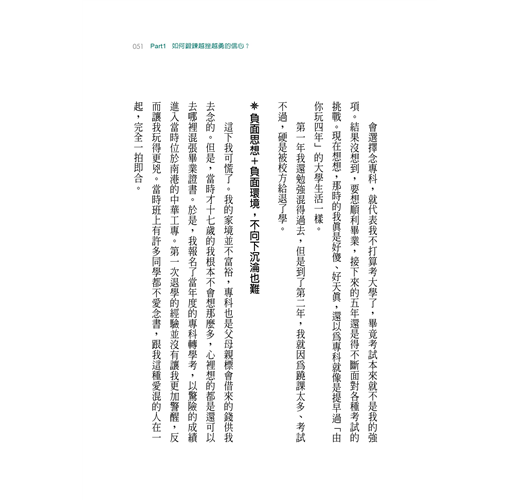 即便「成功」的定義很籠統,但畢竟很少有人生來就是「人生勝利組」的一員,而現在檯面上或螢光幕前被大家歸為「人生勝利組」的人們,其實大多都有段不為人知的逆轉故事,因此,我們不講成功學,但是我們要講的是,面對挫折時,讓我們「逆轉未來的能力」。