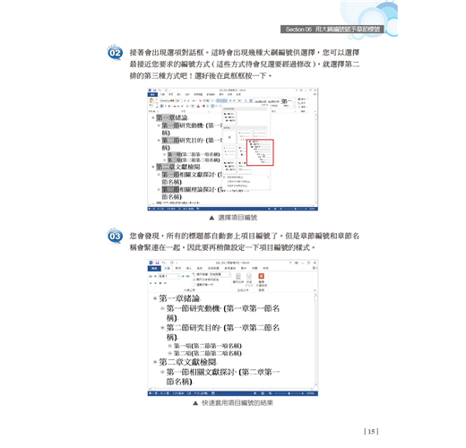 .按文件結構分節,查找可套用的範例,修改格式不用重頭來