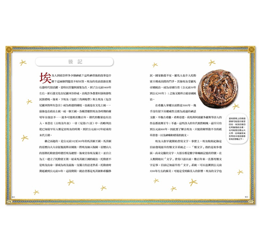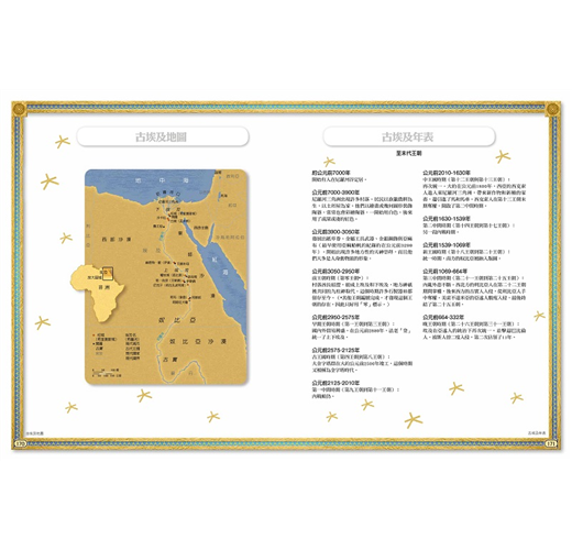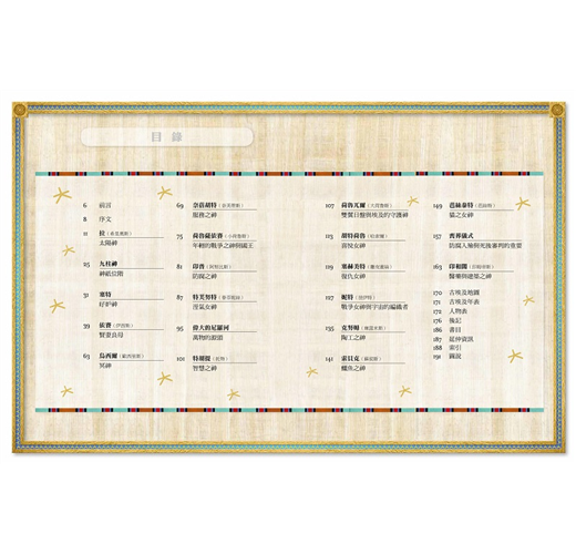 ★穿插與神話情節有關的人文、歷史或地理環境介紹。書末附有古埃及地圖及發展年表等,讓你一目了然,輕鬆踏入神秘迷人的古埃及諸神世界
