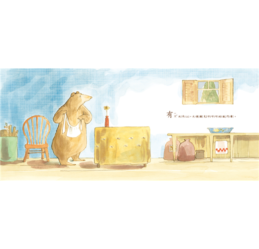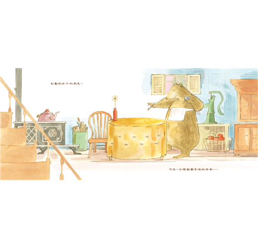 有天早上,大熊聽見敲門聲。他打開門,看見一隻老鼠,大熊要他離開。可是大熊到櫥櫃拿碗的時候-老鼠竟然在那裡!小小灰灰的,還睜著明亮的眼睛。