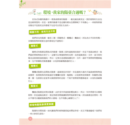 花草植物一直以來都是我們的好朋友,身處鋼筋水泥的叢林裡,對自然的嚮往便成了現代都市人的一個共同追求。其實,想親近自然在家裡也可以做到,小小的陽臺經過我們的精心打理,就可以變成一個充滿歡樂與健康的樂園。