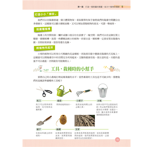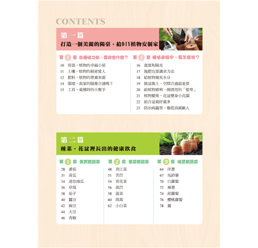 健康的蔬菜、繽紛燦爛的花兒、芳香迷人的香草、結實纍纍的果實,只要這樣的簡單栽種,在莞爾之間,即可讓你體驗豐收的樂趣!