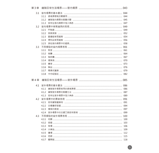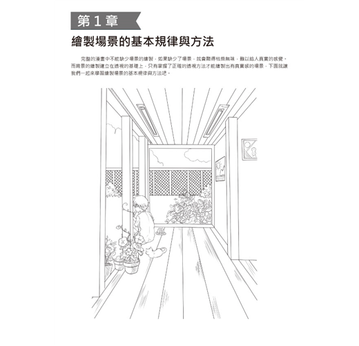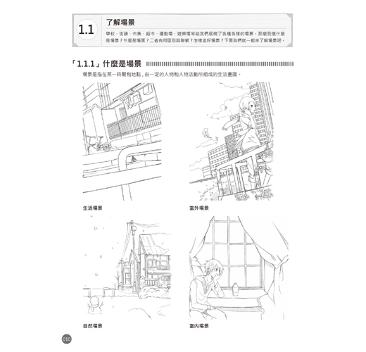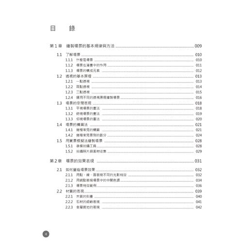 透視的基本原理、場景的空間表現、常見的場景構圖等等不同場景繪製的方法