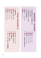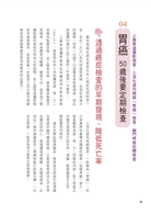 各類癌症自費健檢,特闢專章介紹 — 癌症、腦中風等重大疾病總讓許多人擔憂,往往患者知道自己得病時總是錯愕萬分,在及早發現治療效果最佳的前提下,如何妥善利用健檢資源是非常重要的。第3章「擔心時就去檢查」中讓你清楚了解各類癌症、骨質疏鬆症、腦中風的健檢,有效掌握檢查的黃金時機。