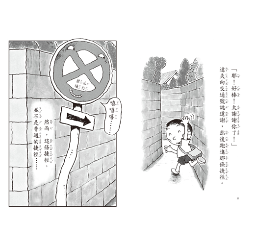 肚子餓扁的達夫為了吃最喜歡的咖哩飯,急著跑回家。突然,一個交通號誌從達夫的面前冒出來,告訴他有捷徑。「哇~真是幫了大忙!非常謝謝你!」說完,達夫立刻往捷徑的方向跑去。但是,這不是一條普通的捷徑!