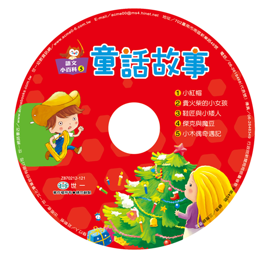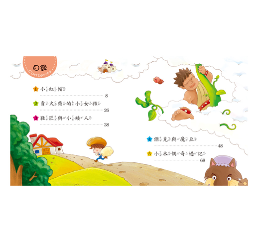 1小紅帽 2賣火柴的小女孩 3鞋匠與小矮人 4傑克與魔豆 5小木偶奇遇記