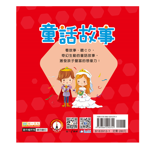 本書收錄5篇著名的童話故事《小紅帽》、《狼和七隻小羊》、《傑克與魔豆》、《小木偶奇遇記》、《賣火柴的小女孩》,孩子可透過生動活潑的圖畫和趣味的故事情節,進入快樂的童話世界。隨書附有一片故事CD,讓孩子享受聽故事的樂趣。