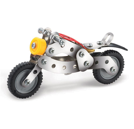 本系列玩具跳脫徒手拼組模型的形式,內附螺絲起子、六角板手、螺絲、螺絲帽等工具,讓孩子體驗組裝的樂趣,以及學習使用工具的方法。