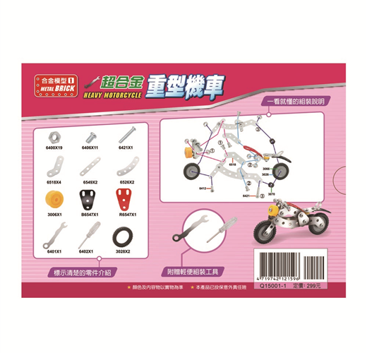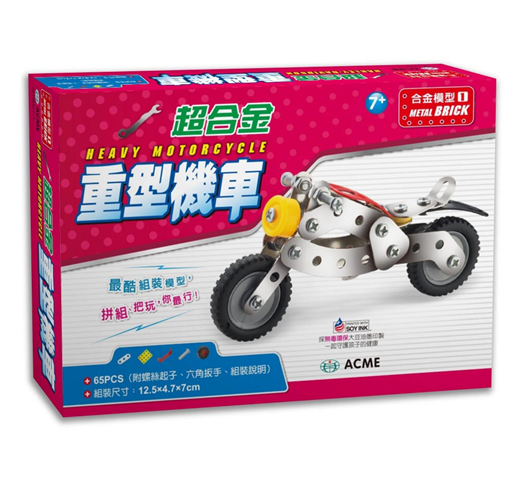 超合金重型機車內附65個大小零件、螺絲起子、六角板手,以及詳細的組裝說明圖,讓孩子自己動手玩模型。