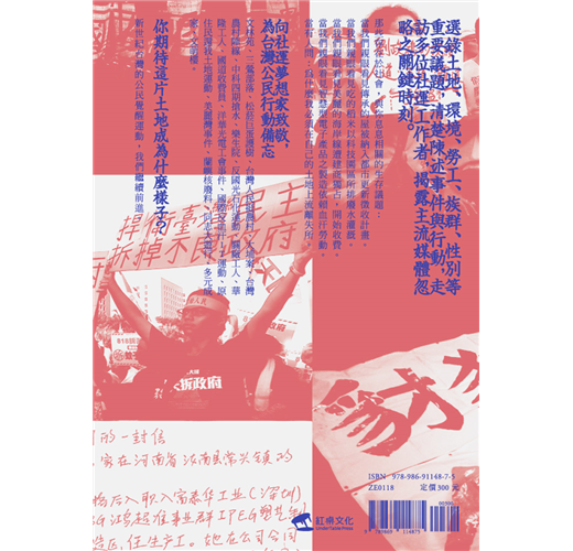 同樣的,這本書的再版,是要誠懇地告訴讀者這塊土地被忽略的公民行動與人民歷史,也要向參與進步社會運動的朋友再次致敬。