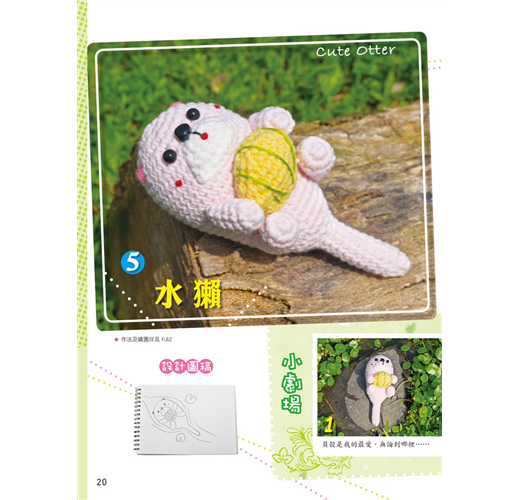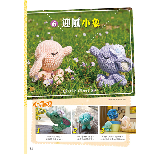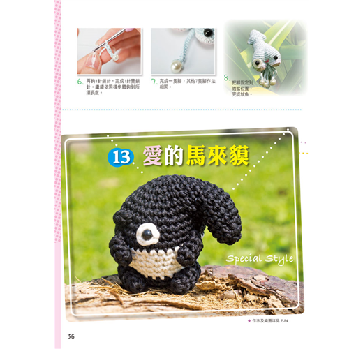 描繪出您夢中的娃娃造型,再解析出身體上每一部位的針數與段數,鉤編出一個個有特色的Q版娃娃,如:馬來貘、三眼外星人、維京小英雄、跳鼠、愛睏貓、愛哭鬼、流浪米克斯......等,超可愛及高療癒指數,迷倒大小朋友。
