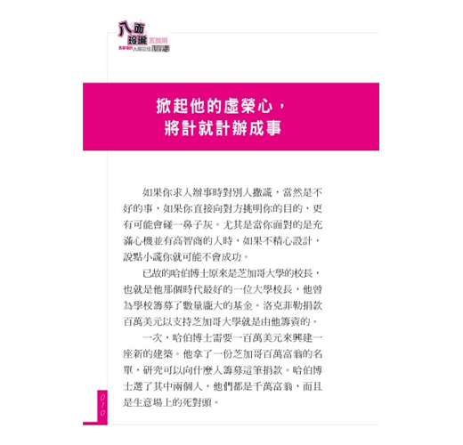 每個人都有或多或少的虛榮心,將計就計的來滿足對方可以更容易達到你的目的。所以你應該記住:必要時得耍一點小詐,善意的謊言更能讓人成功。