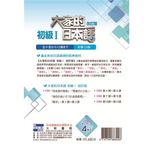 《有聲CD版》依序收錄各課「單字」、「句型」、「例句」、「會話」、「練習A」、「練習B」、「練習C」、「問題(聽寫部分)」, 反覆聆聽CD,模仿其發音及語調出聲練習, 必能奠定良好的基礎,說出一口流利的日語!