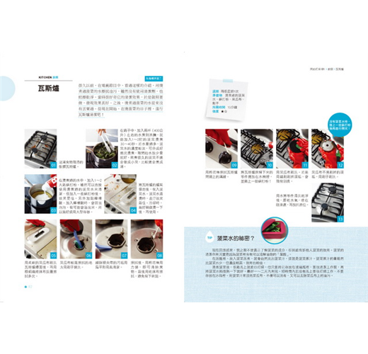 廚房因經常用水,在做料理時,也會製造出回鍋油和廚餘等,只要一兩天稍微不注意,就會出現令人頭疼的現象。例如,清潔瓦斯爐上的油污和發出惡臭的排水孔,沾滿油污的抽油煙機和濾網,黑洞般的冰箱,不想碰的垃圾桶,廚房用品上的手垢,流到流理臺下櫃裡的洗碗水等……只要想到這些,就讓人很頭大!