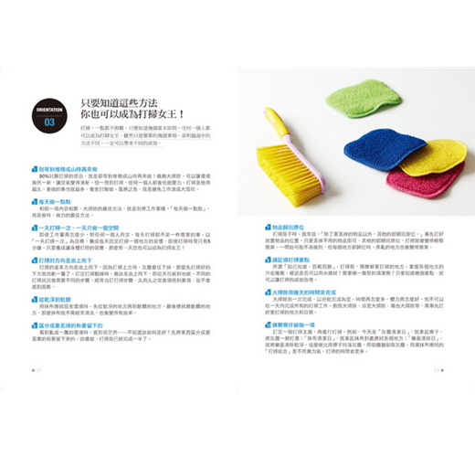 尤其她的掃除法平易近人,不用花大錢買用具,打掃時間可以縮到最短,自創的點子更讓人讚嘆連連,讓打掃變得像玩遊戲一樣充滿樂趣,不再枯燥煩人。