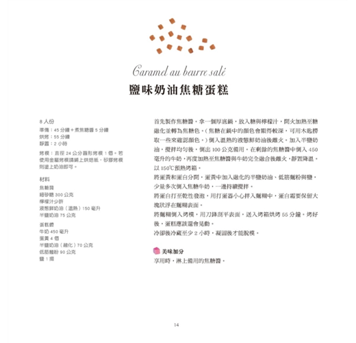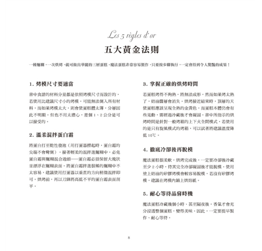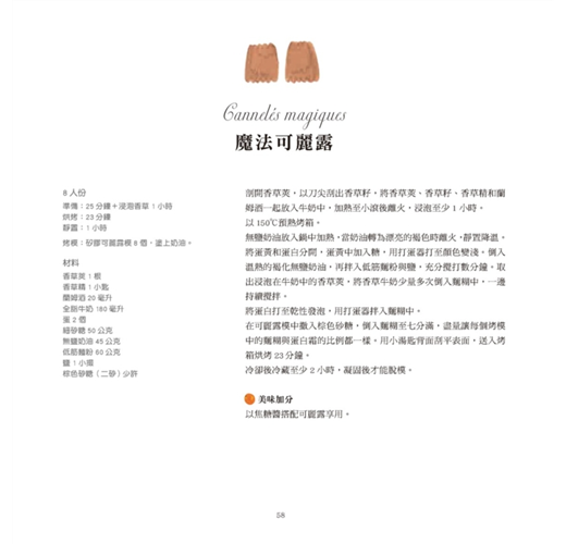 來自南法鄉間的傳統民間甜點,遇上現代烘焙家,迸發出一連串的甜蜜魔法。利用極稀麵糊和輕盈蛋白霜一次烤出三層式華麗糕點的神祕食譜,以簡單概念,達到奇妙效果,這新穎的烘焙法紅遍全法、又蔓延西班牙、美國、台灣。