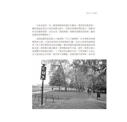 為何會突然改變原本堅持的想法,做出如此巨大的決定,我想,或許是而立之年後的中年失落,過去曾經讓自己廢寢忘食、全心全意投入的工作職場,突然間變得索然無味,似乎人生走到了茫然的十字路口,但省視自己理想和信念明明都還在,可就是少了點熱情和動力,原因是什麼,也找不到答案,才會出現去朝聖這個意外。