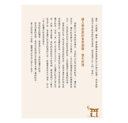 辻先生曾在《和食的祕密世界》一書中提到,日本飲食文化源於三大要素——「大自然所孕育出的宗教觀」、「將一年分為二十四節氣七十二候的細膩心態」、「正月新年、夏秋祭典等儀式」。