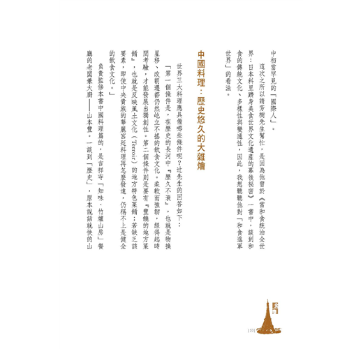 「中國菜是以儒道思想為基盤,再融合佛教素食、回教清真菜的『混合體』。」