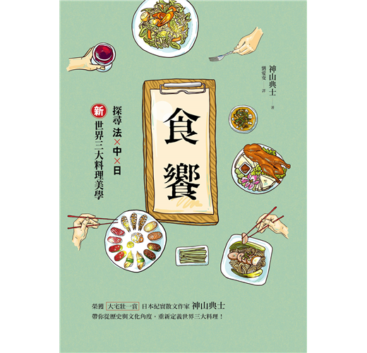 神山典士以流暢、富趣味性的文筆,娓娓道來法、中、日三國料理的特色及發展歷程;更請來三位大廚監修,增添書中知識的可讀性。訴說三國料理的風光榮耀之餘,神山典士也呼籲大家,應盡力保存傳統飲食精髓,抵擋「速食文化」的侵略,才能讓各國料理美學持續發揚光大。