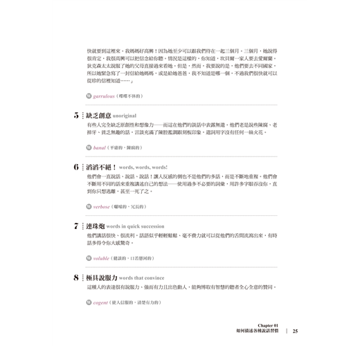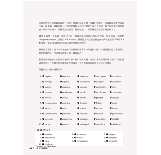 你能夠精準的使用單字嗎?是否可以正確的發音及拼音?你能不能夠避免語病、不犯令人尷尬的文法錯誤?若你對以上任何一個問題的答案是「否」,那麼就應該翻開本書;若你想要更上一層樓、有系統地將字彙量擴充至極限,則更必須閱讀本書。