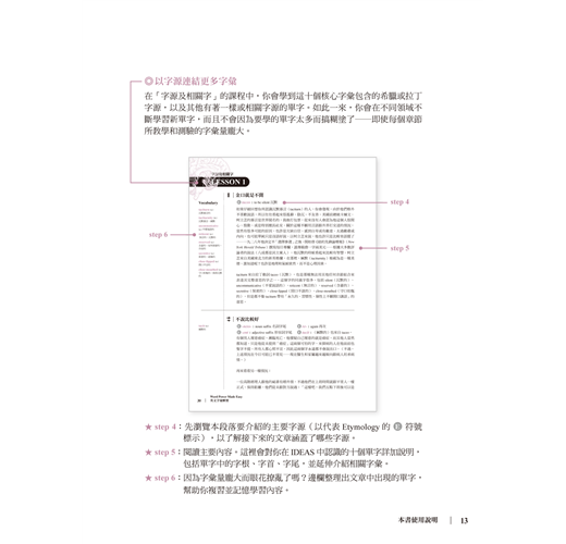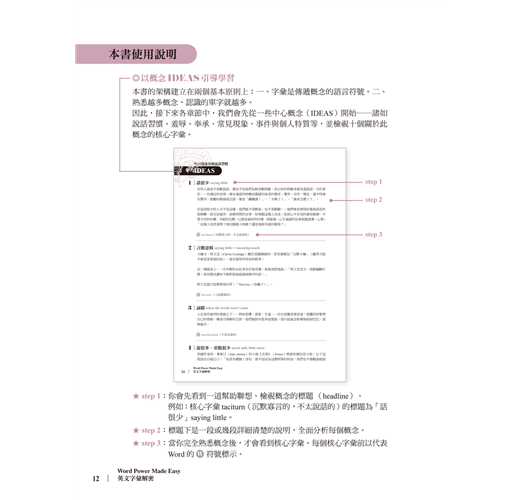 本書的架構建立在兩個基本原則上:一、字彙是概念的字面象徵。二、一旦你熟悉越多概念,就能學會越多字彙。