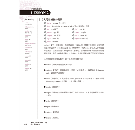 以字根、字首、字尾的方式學習,是大量擴增單字的根本。在「字源與相關字」的課程中,你會學到這十個核心字彙包含哪些希臘語或拉丁語的字根,以及其他有著相同或相關字根的單字。