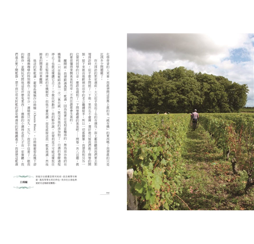 到現在我還是很慶幸,當初自己有下定決心出國念葡萄酒學。二○一一年我的旅程從法國展開,之後又到了西班牙與義大利,三個國家分別停留了三個月(義大利)、六個月(法國)以及一年(西班牙),書中主要記錄了我在法國與西班牙的課程與實習經歷。如今,一邊讀著本書,一邊驚訝當初自己能有這股衝勁與毅力。
