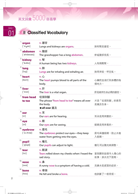 Unit 6 01 Attending Classes 上課 219 02 Cardinal and Ordinal Numbers 基數和序數 224 03 Sports 運動 228 04 The Composition Class 作文課 235 05 Education ( I ) 教育(一) 243 06 Education ( II ) 教育(二) 250 Unit 7 01 Languages and Nationalities 語言和國籍 261 02 Grammar Review 文法複習 269 03 The Secret of Successful Language learning 語言學習成功的祕訣 276 04 Conjunctions 連接詞 284 05 Transition Words 轉承語 290 06 Communication and Conversions 溝通和詞類轉換 295 Unit 8 01 Plants, Fruits, and Insects 植物、水果和昆蟲 305 02 Weather and Climate 天氣和氣候 311 03 Wars, Weaponry and Disasters 戰爭、武器和災難 316 04 Geography and Landscapes 地理和地貌 324 05 Time ( I ) 時間(一) 330 06 Time ( II ) 時間(二) 334