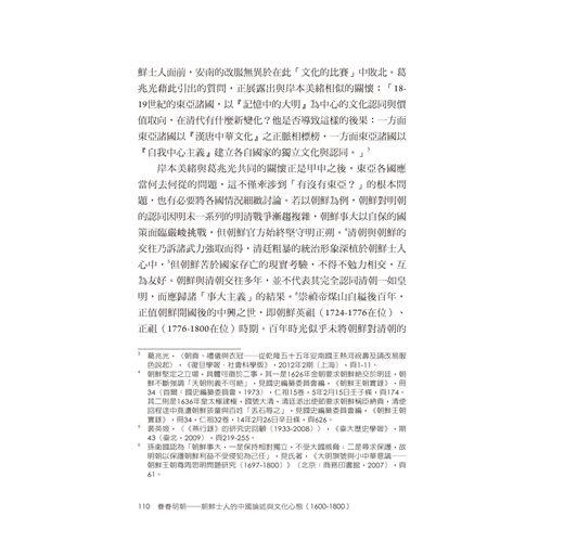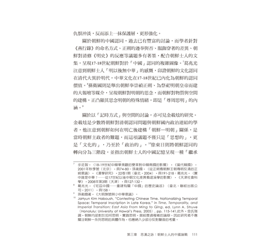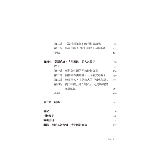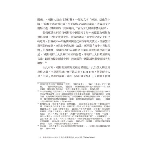 2.中韓關係研究論著,時間跨越200餘年,徵引29種《燕行錄》+32種朝鮮士人文集--「本書最大的貢獻在於突破『遺民』課題一向自囿於中國史範疇的侷限,開啟從比較的角度、以中國為參照對象探討中朝關係之新頁,使『朝鮮史』與『明清史』得以合流。所得論點多所創發」──國立臺灣師範大學歷史學系名譽教授 林麗月