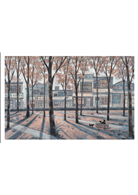 另一方面是我確實從這些圖畫裡,真切的感受到時間緩慢又無聲的流動在其中。那些灰藍灰橘和灰黒的樹啊房子啊街道啊,構成一種寧靜又祥和的氛圍,還有種說不上的一絲絲感傷,令我著迷。