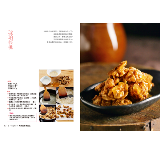 親手調和糖與蛋液,製一碗甜味核桃蒸蛋;燉煮一鍋紅棗銀耳湯,健胃養顏又潤肺;自製香氣四溢的酒釀,隨時可以做成各種酒釀甜點,溫寒補虛。只要運用常見易取得的食材,出門在外也能嘗到最想念的媽媽的味道!