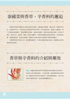 南洋香草除了能增添料理的風味,還具備食補療效,享受美食的同時,也能兼顧健康。例如南薑可以去除肉類的腥味,還能改善過敏體質。其他16種香草及辛香料的味道與對身體的助益,書中都有詳盡的解說。
