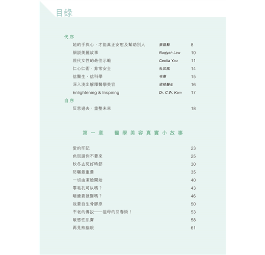這一年,是重大改變的一年。從沒想過有一天自己會豁出去自立門戶,但既然踏出了這一步,相信這將成為我人生的一個重要里程碑。因此在忙碌緊迫中仍堅持籌備這部書,既是一份執着,也因一股牛勁。希望藉此重整過去,同時祝福未來;也希望為讀者帶來幸福,在醫學美容方面
