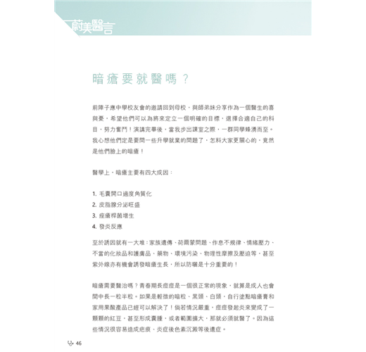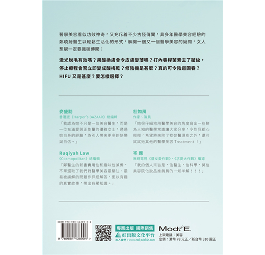 鄭醫生的新書實用性和趣味性兼備,不單選取了我們對醫學美容最關注、最易被誤解的問題作詳細解答,更以有趣的真實故事,帶出有關知識。而意料之外的驚喜,就是加插鄭醫生在習醫路上的苦與樂,盡顯感性一面。