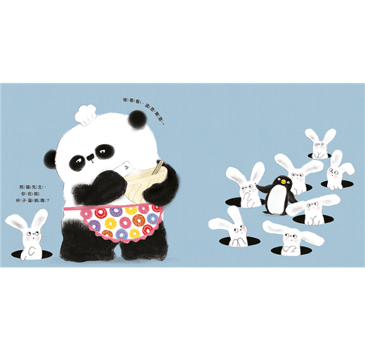 《熊貓先生,我願意等》也有異曲同工。熊貓先生的驚喜的確非常吸引人,但越是美好的事物往往越需要耐心等候,這對於缺乏耐性、總是說要就要的小小孩來說,就像那些不耐等候的羊駝、馬來貘、兔子和鶴的反應一樣,因為掉頭離開而錯失了美好的成果。但作者同樣也安排了一個反差的對應角色小企鵝,這樣的反差同樣產生值得和幼兒討論的因果關係。小企鵝從頭到尾一以貫之的「我願意等」,他的耐心等待是一種品格表現,也是一種謙恭的態度,不僅鼓舞了賣力做點心的熊貓先生,更讓自己最後終能獲得那個出人意表的大驚喜。