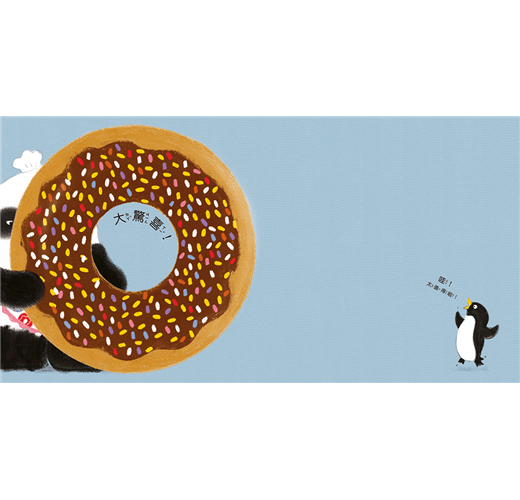 越是美好的事物往往越需要耐心等候,這對於缺乏耐性、總是說要就要的小小孩來說,就像那些不耐等候的羊駝、馬來貘、兔子和鶴的反應一樣,因為掉頭離開而錯失了美好的成果。但作者同樣也安排了一個反差的對應角色小企鵝,這樣的反差同樣產生值得和幼兒討論的因果關係。小企鵝從頭到尾一以貫之的「我願意等」,他的耐心等待是一種品格表現,也是一種謙恭的態度,不僅鼓舞了賣力做點心的熊貓先生,更讓自己最後終能獲得那個出人意表的大驚喜。
